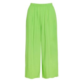 Cropped wide-leg style, perfect for weekends and work. Elastic waist for easy on and off. Side slant pockets. 23 inches in the bottom. 100% Spun Jam, World Rayon.