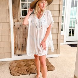 We LOVE this ocean inspired crochet piece. It’s great as a cover up and as a dress. Beautiful starfish crochet detailing goes all the way around. Can be worn as a cover up or a dress. Model is 5’9″ tall and wearing a small Fabric content: 100% acrylic