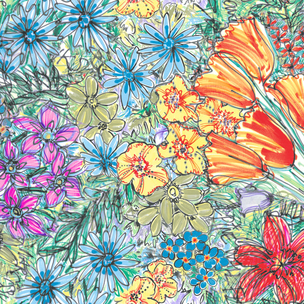 Our classic, very comfortable style. Deep U-neckline, dropped waist, three-layer ruffles. 100% printed rayon.