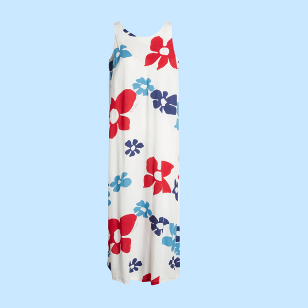 Our ’60s-inspired limited-edition capsule collection comes straight from our archives. Only 60 pieces were produced in honor of Jams World’s 90th anniversary. This flowing, sleeveless maxi dress is perfect for a night out or a casual stroll. Easily wearable from day to night. Signature Tradewinds USA print. Crew neck. Sleeveless. 100% chopped rayon.