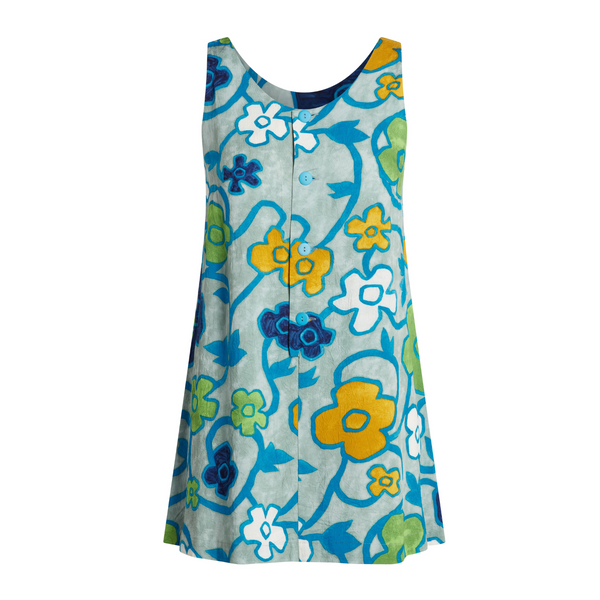 Our 60s-inspired limited-edition capsule collection comes straight from our archives. Only 60 pieces were produced in honor of Jams World’s 90th anniversary. Capture the bold and playful spirit of the 60s. Pair with vintage white Go-Go boots or a denim jacket and loafers for a more modern look. Signature Gimlet print. Crew neck. Sleeveless. Button front. 100% Spun Rayon