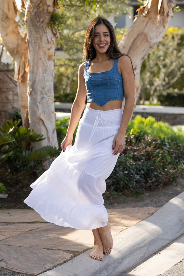 You’ll get great use out of this Maxi Skirt. She’s a great festival piece for anyone who isn’t looking to wear something short. She’s great with sandals or cowboy boots. It’s also a great resort piece to take along on your trip for lunch or dinner. Skirt is also a great cover up to throw on over a bathing suit.
