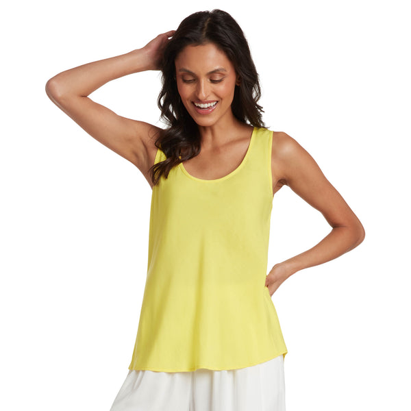 Perfect fit, bias-cut tank top, shirt hem at hip length, perfect with any outfit. Made from 100% spun-dyed rayon.