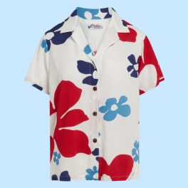 A timeless camp shirt or women’s Hawaiian shirt. Features a collar, button front, and side slits for a comfortable fit. 100% Spun Jam, World Rayon.